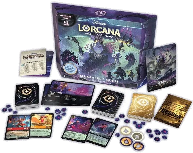 - Immerse yourself in a magical world with the Disney Lorcana Trading Card: Illumineer's Quest - Deep Trouble set- Explore the depths of the Lorcana universe with stunning artwork and captivating storytelling- Collect powerful cards featuring beloved Disney characters embarking on an epic quest- Engage in thrilling battles with friends and foes alike as you seek to conquer the challenges of Deep Trouble- Expand your Lorcana card collection and master the art of strategy in this adventure-packed trading card game