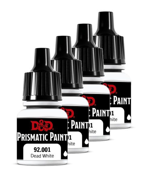 D&D Prismatic Paint is designed to go on smoothly and leave a nice, matte finish on hobby miniatures. Developed by Acrylicos Vallejo, these 60 paints—including 20 new colors, formulated specifically for the D&D Prismatic Paint line—should appeal to beginners and experienced painters alike.Each of these paints comes in an 8ml dropper bottle, to help painters keep their crafting surfaces free of spills. Each bottle is labeled with the paint color and product code, as well as a logo indicating if the contents are a basic color, a wash, an effect paint, a metallic, or a medium or varnish.